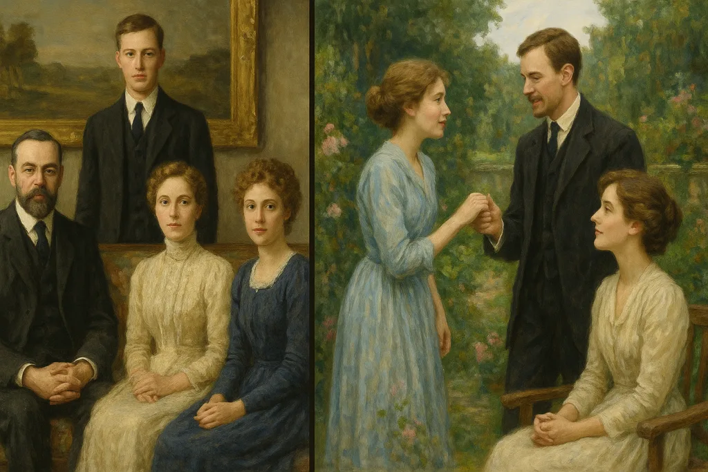 ドイツ人の父とイギリス人の母を持つシュレーゲル家は、ロンドンのウィックハム・プレイスに住む知的な中産階級の家庭です。父親は早くに亡くなり、母親も姉妹が若い頃に他界したため、長女のマーガレット・シュレーゲルが家庭を支えています。マーガレットは29歳で、理性的で現実的な性格を持ちながらも、文学や芸術に深い造詣を示す知識人です。一方、妹のヘレンは21歳で、感情豊かで理想主義的な性格として描かれており、社会の不公正に対して敏感に反応する正義感の強い女性として登場します。